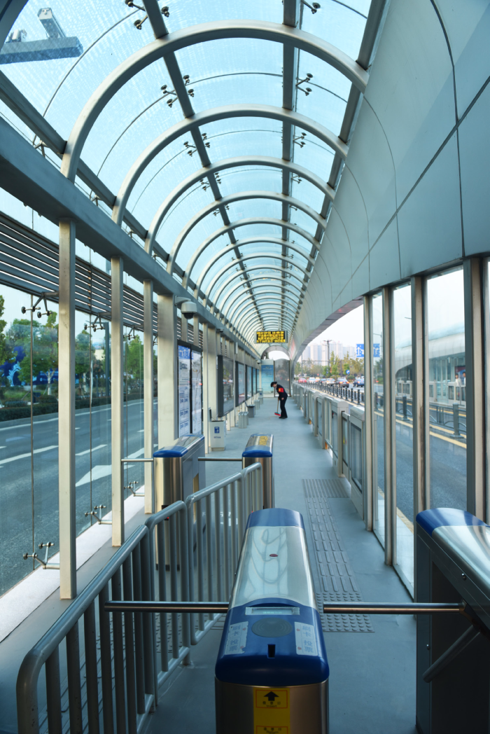 連雲(yún)港市快速公交(BRT)1號線起于海州區(qū)海州客運(yùn)站,途經(jīng)幸福路、海連路、新港城大道、中山路、海棠路,終點(diǎn)位於連雲(yún)區(qū)在海一方,線路總長約33.1km,設(shè)置中間站27對。項(xiàng)目包括線路的可行性研究、方案設(shè)計(jì)和施工圖設(shè)計(jì)工作。B1線建成後,專用道受車輛進(jìn)出干擾較小,BRT的車速明顯高於同路段的常規(guī)公交和其他車輛;風(fēng)格現(xiàn)代、時(shí)尚簡約的BRT車站位於道路中央,十分吸引乘客視線,有效提高了BRT線路的吸引力,同時(shí)側(cè)式站臺便於支線和常規(guī)公交的同臺換乘、接駁??焖俟?號線具有低票價(jià)、快速和準(zhǔn)時(shí)的特點(diǎn),向市民提供優(yōu)質(zhì)的公共交通服務(wù),帶動了整個(gè)城市公共交通服務(wù)水平的提升。