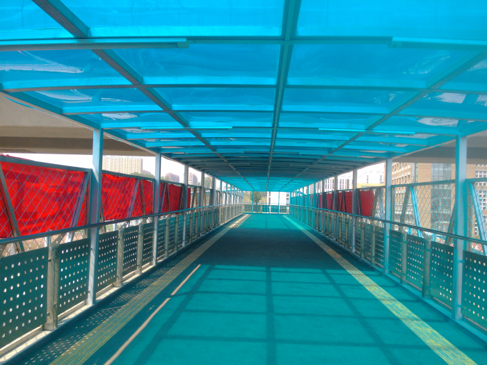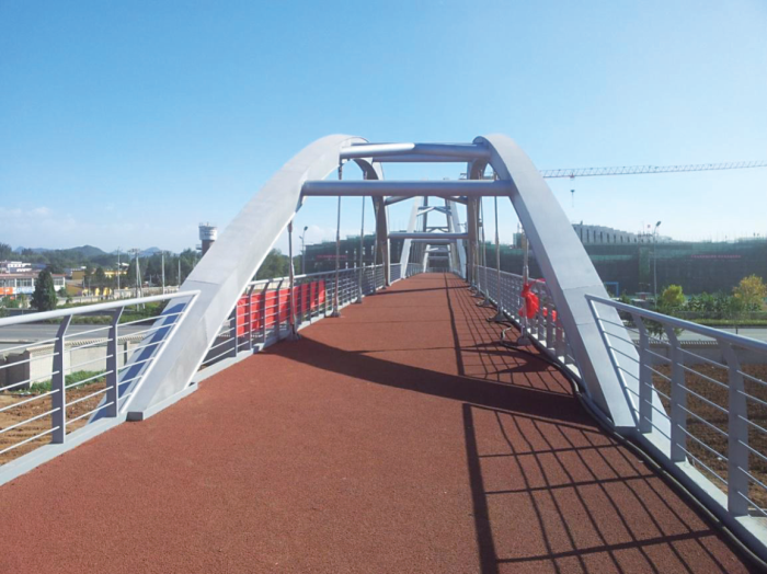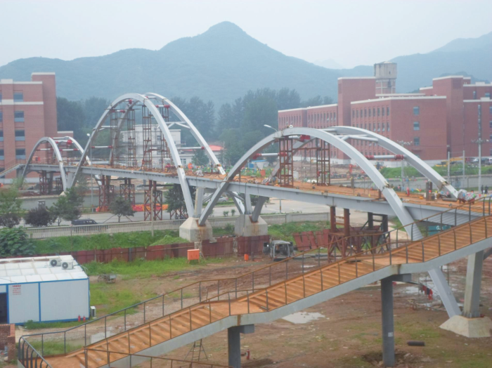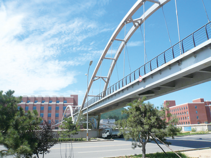 The overpass is located on the east side of the Management Cadre Institute of the Chinese Academy of Sciences (CAS) on Huaifeng Highway, Huairou District, Beijing, spanning over Jingjia Highway, and the east and west campuses of Huairou Campus of the Graduate School of CAS. The planned Jingjia Highway is a Grade I highway, and the red line width 70m. The overpass span is 45+60+46.5+4.5(m), a half-through steel oblique arch bridge with uniform section. The girder height is 1.0m, top width 5.0m and...
