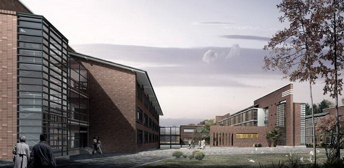 The central teaching zone: it includes four teaching groups, and houses for administrative offices and scientific research offices. The space structure is open yet with certain enclosure, and personalized design is adopted for buildings, to embody the design concept that campus can grow.