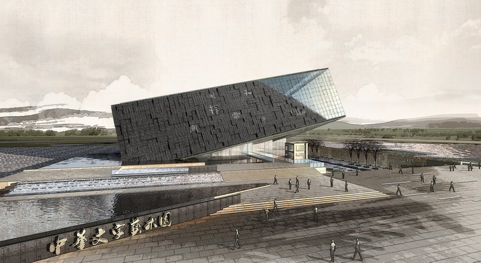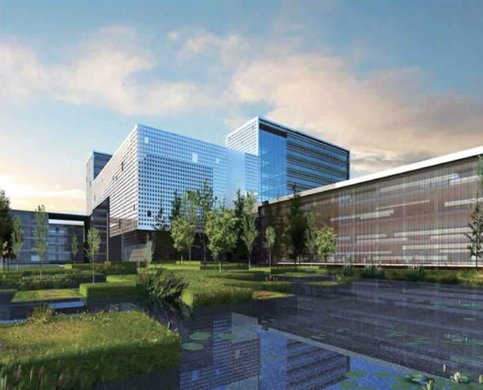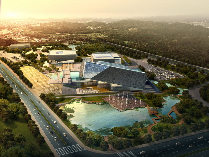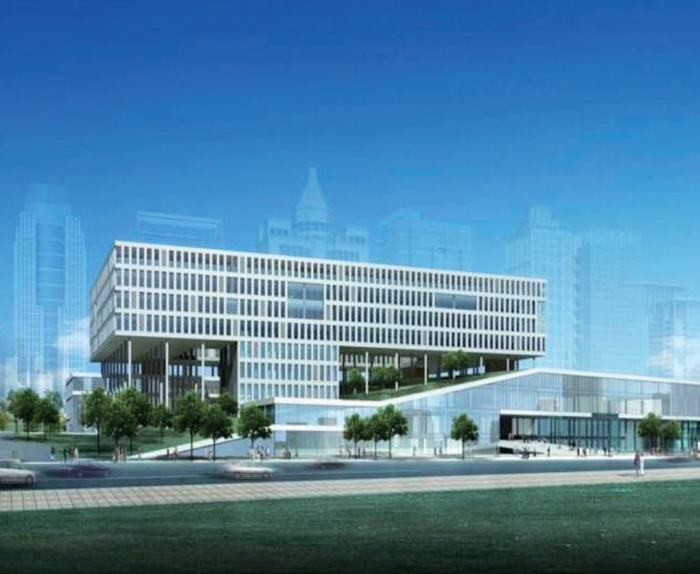 The land area of project is about 125,000 m2 and the total building area is about 54,000 m2, of which the area of main building in Phase I is about 29,000 m2 and the area of ancillary building in Phase II is about 25,000 m2. The aboveground part of main building is structured by pure steel with the longest cantilever of about 30 m. Its facade is structured by glass and stone, and a Chinese traditional architectural form – “璽” is adopted.