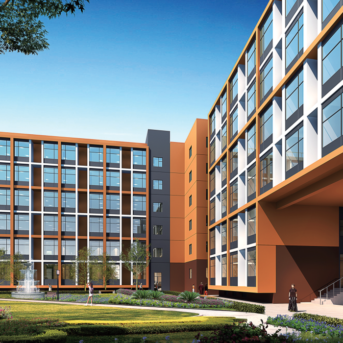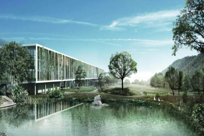 The total land of project is 90 hectares and the total building area is 420,000 m2. It gives consideration to Chinese traditional culture and modern architectural features. The building is situated at mountain foot and beside a lake, demonstrating the natural landscapes of an urban garden, learning the gardening idea of “Imitating Nature” for Chinese classical garden and creating a mood with a theme of modern landscape classical academy.