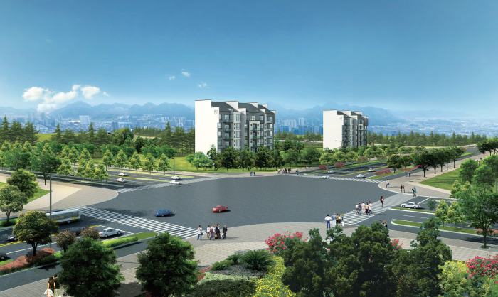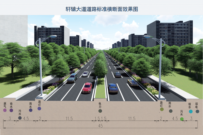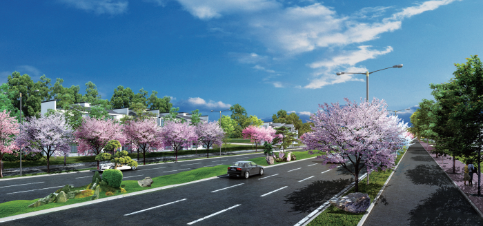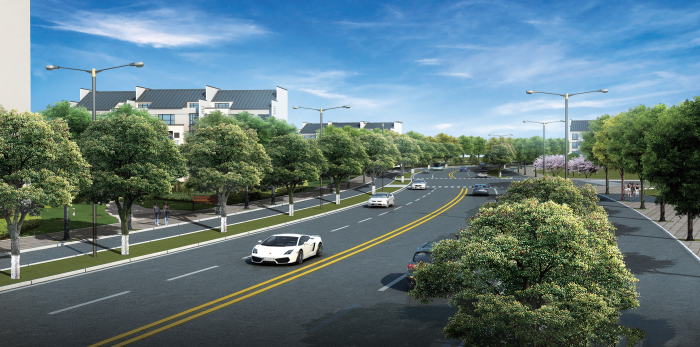 合肥壽縣蜀山現(xiàn)代産業(yè)園區(qū)路網(wǎng)建設(shè)工程位于安徽省壽縣炎劉鎮(zhèn)南側(cè),包括科學(xué)大道、幸福大道、黃樓路和永樂路四條路,其中前兩條爲(wèi)城市主幹路,後兩條爲(wèi)城市次乾路。道路總長8.12公里,設(shè)計(jì)車速分別爲(wèi)60和40公里每小時(shí),紅綫寬60米和45米,設(shè)計(jì)年限15年,混凝土路面。設(shè)計(jì)內(nèi)容包含道路、橋梁、給排水、交通、綠化景觀專業(yè),其中總綠化面積約40公頃。