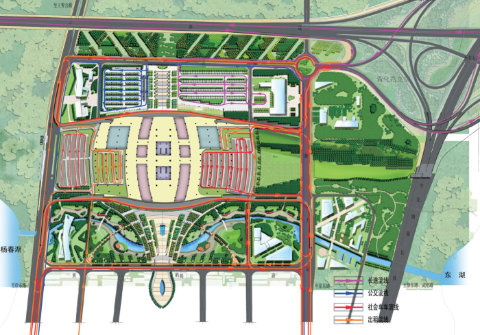 武漢火車站位於武漢中心城東部,對外交通較為便捷,周邊主要有友誼大道、建十路、武青四幹道、沙湖大道等道路,總用地12.77公頃。項(xiàng)目在分析了火車站綜合交通條件的基礎(chǔ)上,提出整體交通樞紐佈置方案,為客流提供良好的換乘空間和設(shè)施,達(dá)到系統(tǒng)銜接的最優(yōu)化。項(xiàng)目主要運(yùn)用劃分功能,分區(qū)處理思想,疏導(dǎo)和消除各種交通方式間的相互干擾,充分發(fā)揮本交通樞紐的最佳經(jīng)濟(jì)效益和社會(huì)效益,達(dá)到最優(yōu)效果。在設(shè)計(jì)上通過交通組織分析和評價(jià),以乘客為主體,以提供了良好換乘空間為目標(biāo),保證各要素間順暢銜接,系統(tǒng)高效運(yùn)行。