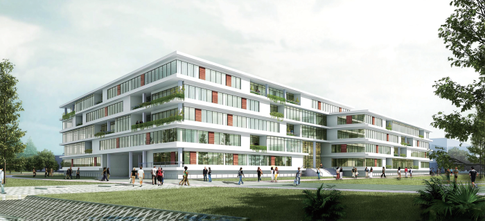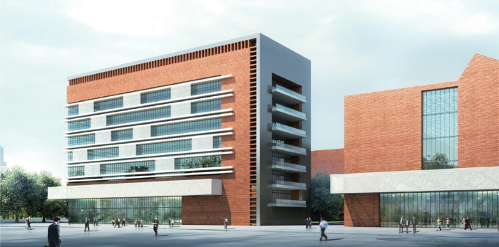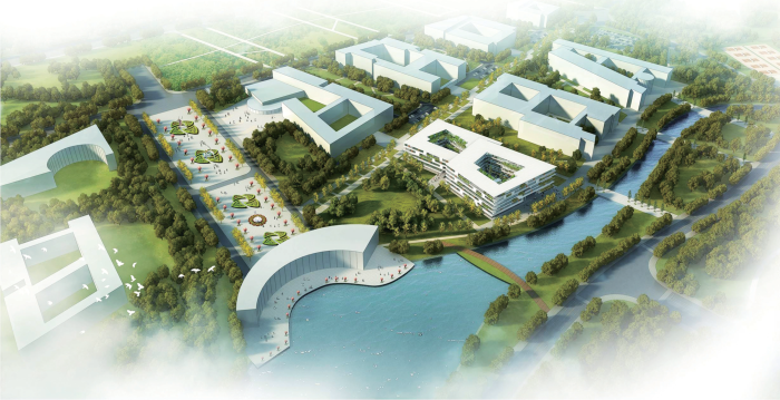 It reflects the features of the Graduate School of Arts. By humanity and landscape features, the modern architectural features are embodied. The total land is 40.71 hectares while total campus building area is 183,000 m2, including a total teaching building area of 124,000 m2 and a total logistics building area of 59,600 m2.