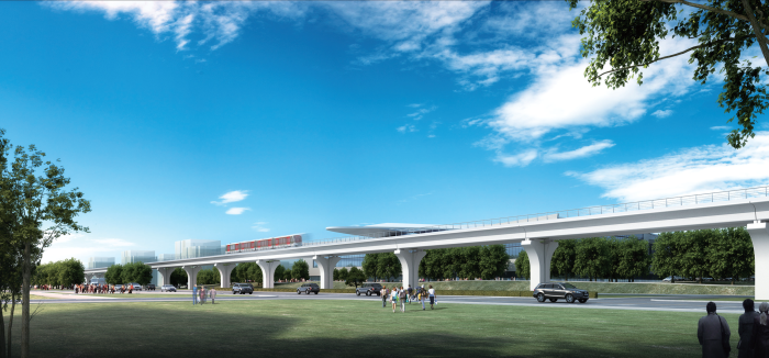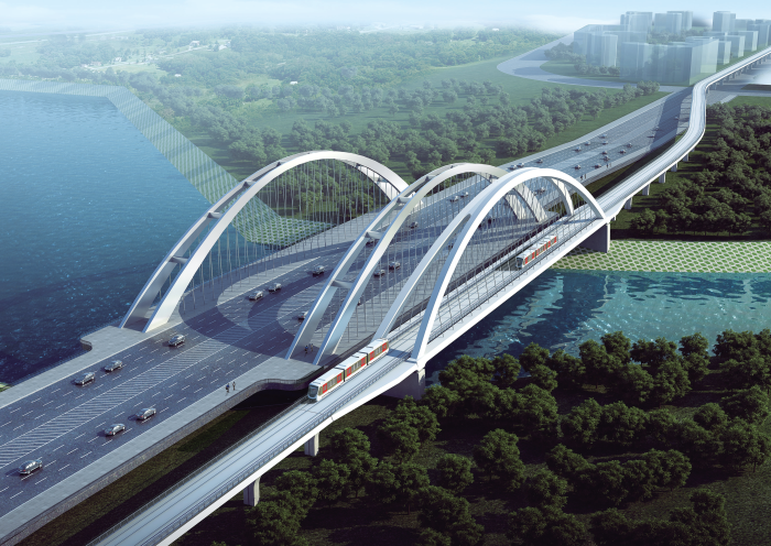 武漢機(jī)場(chǎng)線(2號(hào)線北延線)北起天河機(jī)場(chǎng)T3航站樓,南至2號(hào)線一期工程起點(diǎn)金銀潭站,正線全長(zhǎng)19.8km,設(shè)站7座,是聯(lián)系天河機(jī)場(chǎng)與市區(qū)交通的重要通道,我院與武漢市政設(shè)計(jì)研究院有限公司組成聯(lián)合體中標(biāo)機(jī)場(chǎng)線土建第三標(biāo)段設(shè)計(jì)工作。其中航空總部站,航佳,佳管區(qū)間高架為我院獨(dú)立完成設(shè)計(jì)。航空總部站車站設(shè)計(jì)結(jié)合區(qū)域文化特色,注重節(jié)能環(huán)保和人性化設(shè)計(jì),營(yíng)造了極佳的候車體驗(yàn)。區(qū)間高架長(zhǎng)約1.53km,沿巨龍大道路中布置,上跨機(jī)場(chǎng)大道高架橋及多個(gè)規(guī)劃路口。高架橋注重景觀與細(xì)節(jié)設(shè)計(jì),與市政道路和諧共存。全線采用多項(xiàng)行業(yè)先進(jìn)技術(shù)。攻艱克難,從設(shè)計(jì)到運(yùn)營(yíng)通車僅2年,為目前建設(shè)速度最快的地鐵線之一。