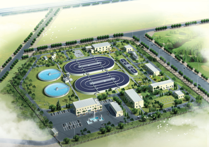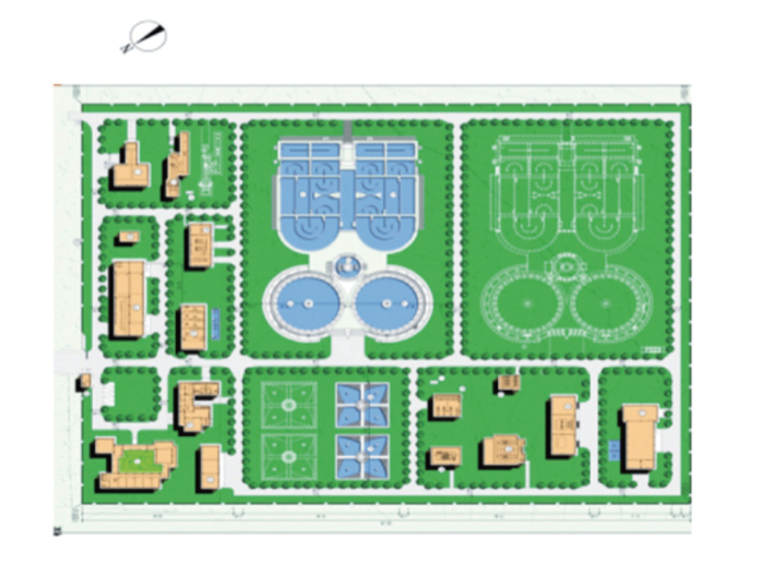 凈水廠 近期規(guī)模為 4 萬(wàn) m3/d, 遠(yuǎn)期規(guī)模為 15 萬(wàn) m3/d。污水廠 污水處理廠規(guī)模為 3.5 萬(wàn) m3/d, 經(jīng)二級(jí)生物處理后的尾水一部分排入污水廠附近的自然溝, 另一部分 (5000m3/d) 經(jīng)過(guò)深度處理后回用, 用于澆灑道路及綠地。