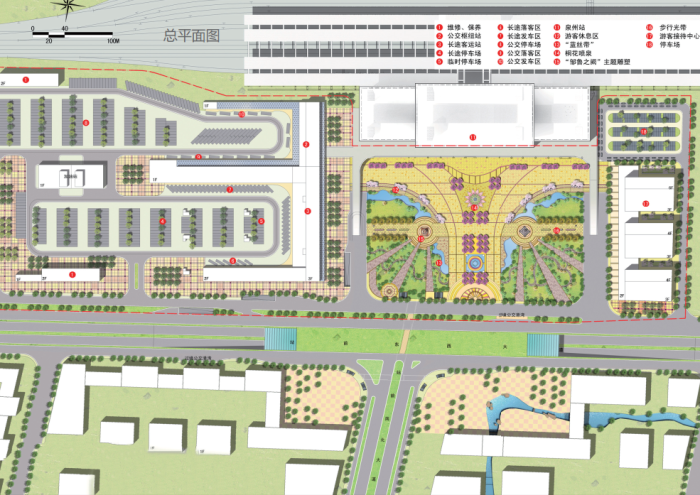 福廈鐵路作為國家《中長期鐵路網(wǎng)規(guī)劃》的重點(diǎn)建設(shè)項(xiàng)目,是我國鐵路“十五”規(guī)劃八縱八橫路網(wǎng)主骨架之一,屬國家Ⅰ級(jí)雙線電氣化鐵路幹線。福廈鐵路將成為貫通沿??焖勹F路大動(dòng)脈的關(guān)鍵路段,連接溫(州)福(州)鐵路、廈(門)深(圳)鐵路,也是福建省第一條城際間快速客貨運(yùn)通道,具有速度快、高密度、大能力、安全、舒適、節(jié)省運(yùn)費(fèi)等優(yōu)勢,將有效改善沿線地區(qū)交通和投資環(huán)境,更加充分發(fā)揮區(qū)域優(yōu)勢、港口優(yōu)勢和開放優(yōu)勢,加快海峽西岸經(jīng)濟(jì)區(qū)建設(shè)。“桐城陸港”作為泉州實(shí)現(xiàn)“海峽西岸經(jīng)濟(jì)區(qū)中部樞紐城市”目標(biāo)的新觸媒,將建設(shè)為:城市綜合交通樞紐、體現(xiàn)城市形象的陸上門戶、城市遊客接待中心。作為城市交通樞紐,“桐城陸港”應(yīng)貫徹以人為本的理念,合理佈局用地、科學(xué)組織流線,實(shí)現(xiàn)交通接駁的“零換乘”。設(shè)計(jì)“南長途北公交、東站房西停車”的十字形結(jié)構(gòu),解決了換乘量...