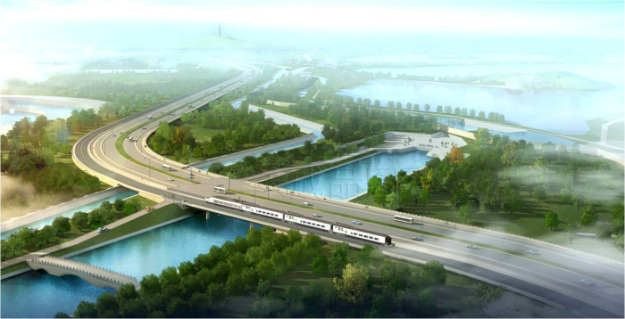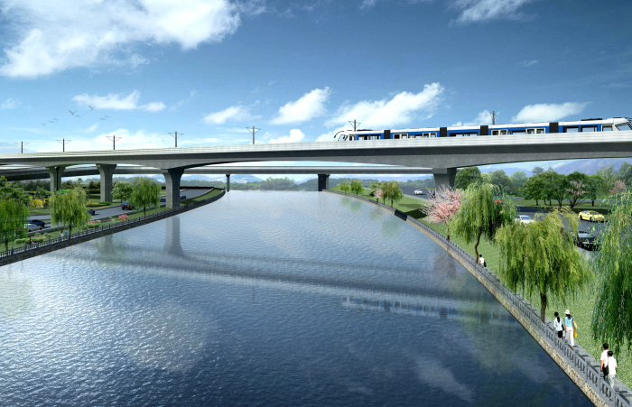 Elevated Sections and Stations of the “Blue Silicon Valley” Inter-City Rail Transit in Qingdao