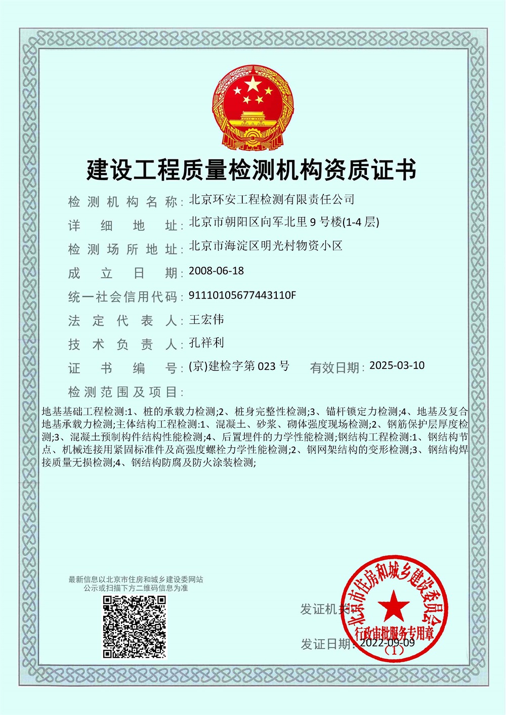 建設(shè)工程質(zhì)量檢測機(jī)構(gòu)資質(zhì)