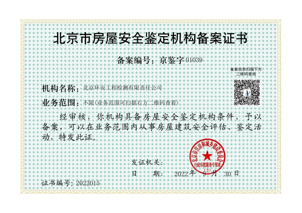 房屋安全鑒定機(jī)構(gòu)備案證書