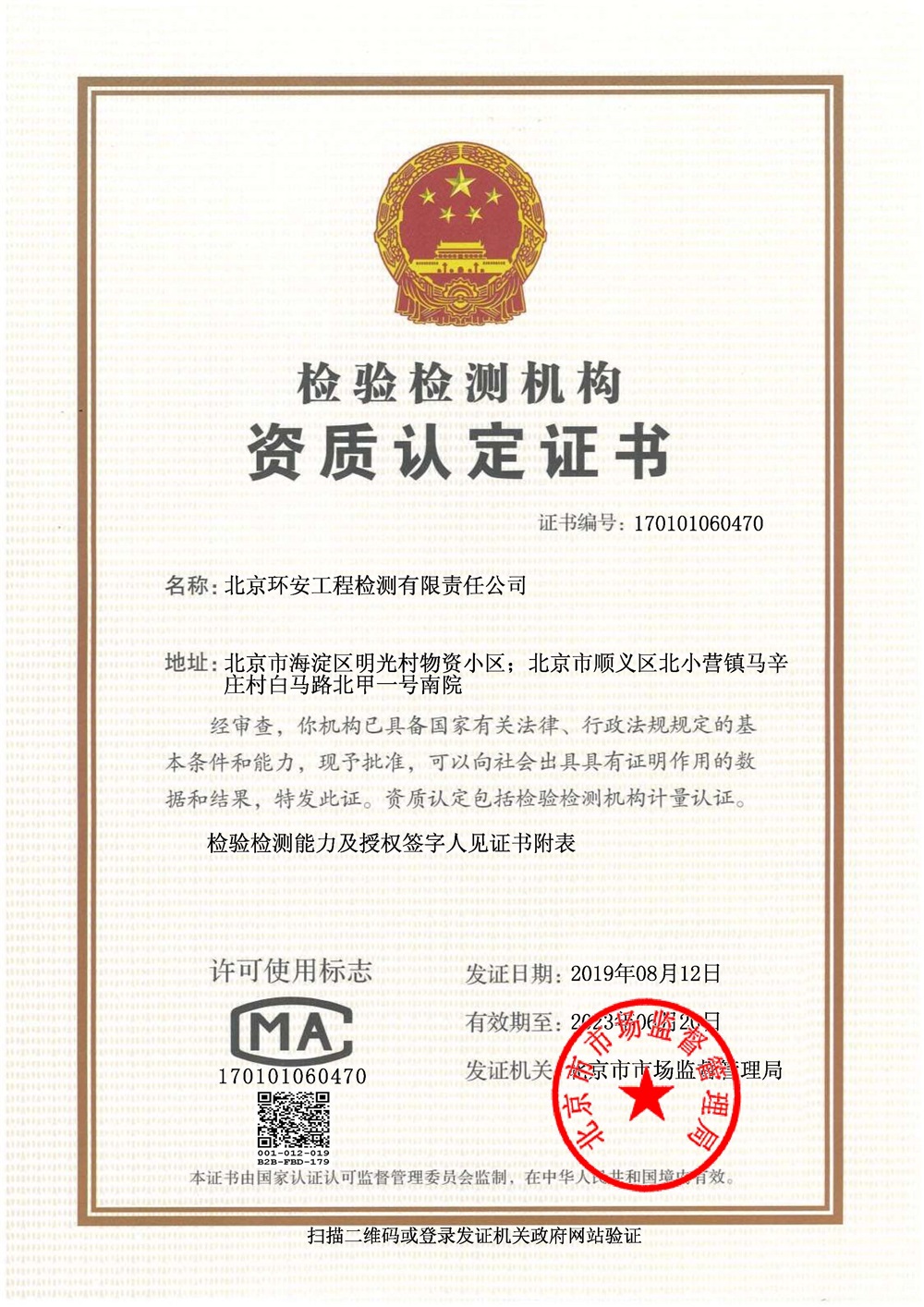 檢驗檢測機(jī)構(gòu)資質(zhì)認(rèn)定證書