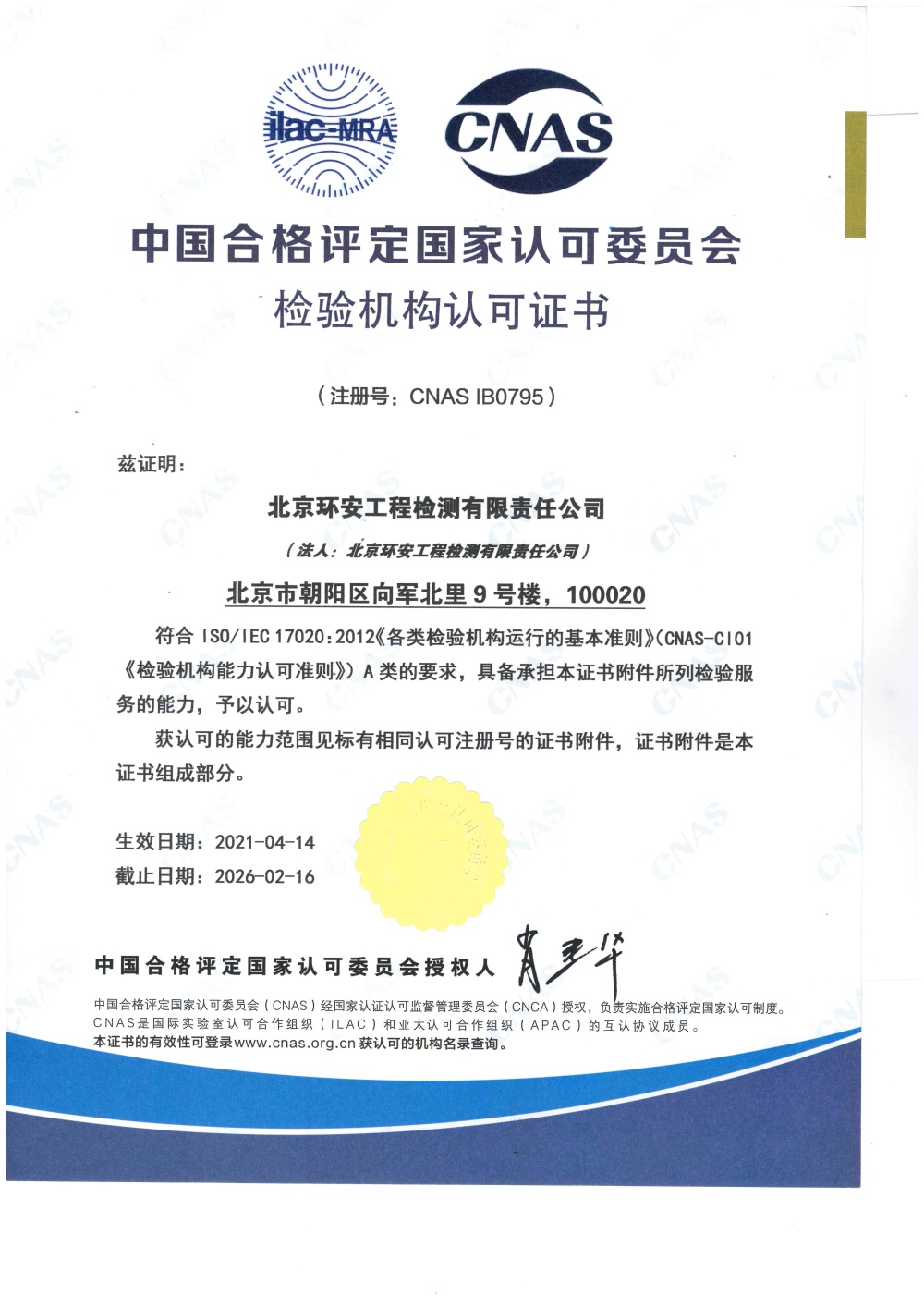 中國合格評定國家認(rèn)可委員會檢驗機(jī)構(gòu)認(rèn)可證書