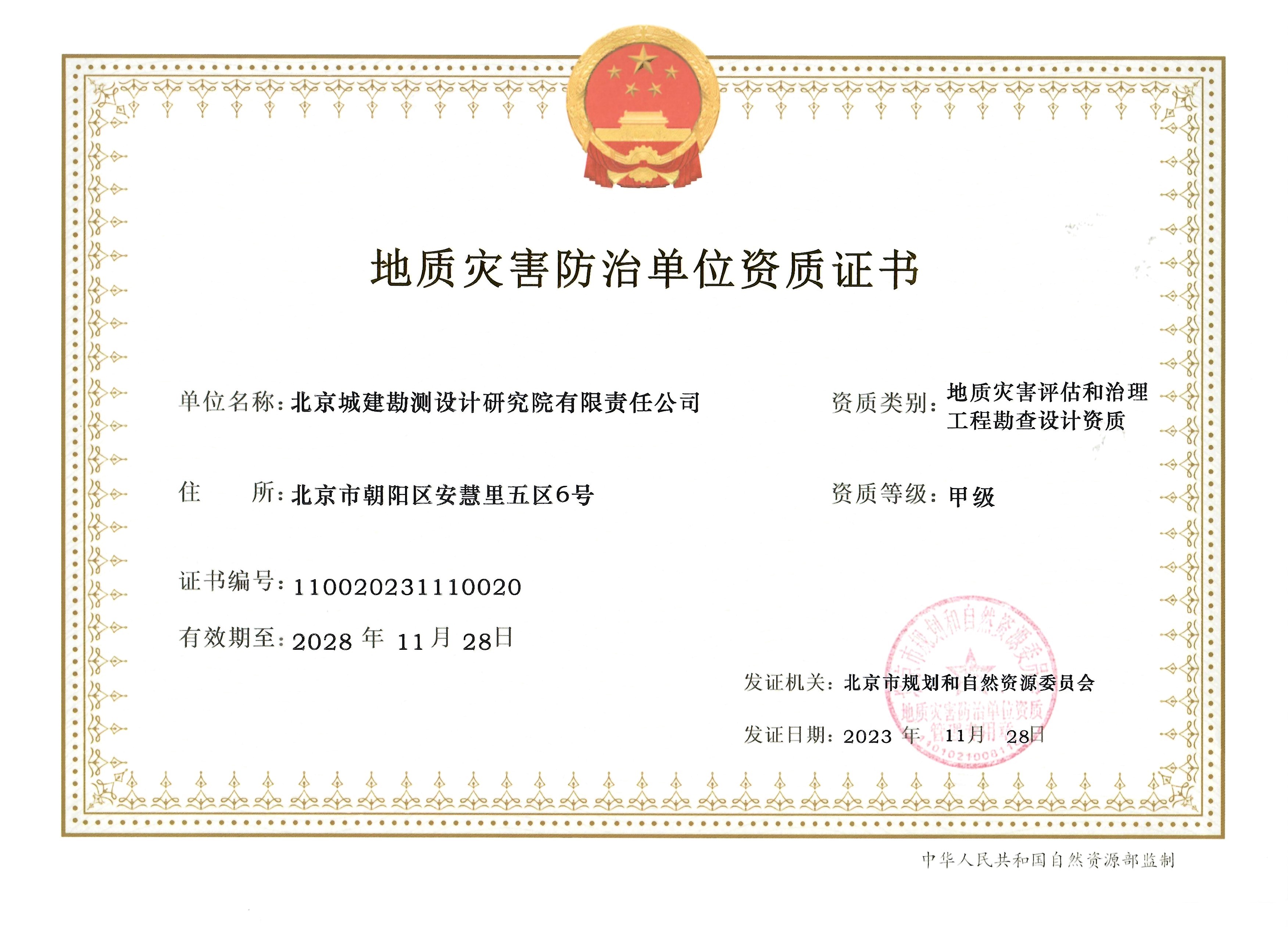 地質(zhì)災(zāi)害評估和治理工程勘查設(shè)計甲級