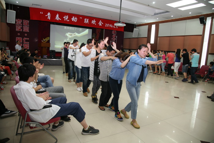 本次活動邀請了專業(yè)拓展公司主持人主持,活動主要分四大環(huán)節(jié),熱身和分組、游戲環(huán)節(jié)、靚男美女評選環(huán)節(jié)、頒獎環(huán)節(jié)。首先進(jìn)行的熱身小游戲《數(shù)青蛙》激發(fā)了大家的熱情;隨后快樂的分組環(huán)節(jié),將現(xiàn)場的男女生分成各四組進(jìn)行不同的PK和互動活動,增近了大家相互認(rèn)識的機(jī)會。第二項歡樂的游戲?qū)⒒顒油粕细叱?。游戲環(huán)節(jié)的PK《翻手》、PK小游戲《悅動速度》、PK《青春速度》讓整個會場激情四射,組長充分發(fā)揮自己的才能和優(yōu)勢,帶動自己的成員PK、運(yùn)動,結(jié)果并不重要,重要的是大家動起來了、快樂起來了!這四大互動游戲,將比賽、競賽、表演、玩耍等充分融合進(jìn)來,讓這140多位年青年朋友們在有限的時間內(nèi)展示自己的才華和能力,讓大家在輕松而愉快的活動中認(rèn)識。第三項,送出祝福和評選活動,再一次考驗大家的觀察力和魅力,最終一位男生獲得本場最靚男生獎,兩位女生并列獲得了本場最美女生獎。第四項頒獎環(huán)節(jié),出現(xiàn)新的驚喜,一位男生與現(xiàn)場的一位女生現(xiàn)場竟然非常投緣,雙方都愿意接觸和溝通,希望進(jìn)一步聯(lián)絡(luò)成為走向幸福。雖然牽手不是我們惟一的目的,但是有驚喜總是讓人高興的。公司工會送出了電影套票和祝福給他們了?,F(xiàn)場的朋友們?yōu)檫@對朋友送出了最熱烈的掌聲和祝福!