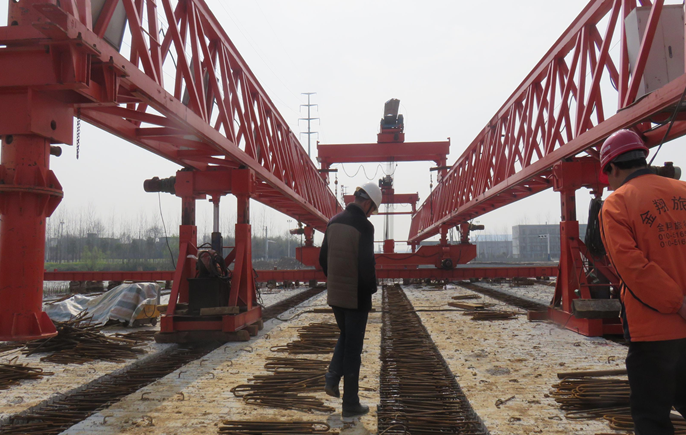 At 7:18 on the morning of April 14, the precise and steady loading of the last boxgirder at the pier of the Changfenggang Bridge marked the 12 main works of the bridge along the Waihuan North Road were completed on schedule. It also marked another periodical success after the completion of the lower structure at the end of the 2015 and the completion of the subgrade earthwork at the end of March 2016.
