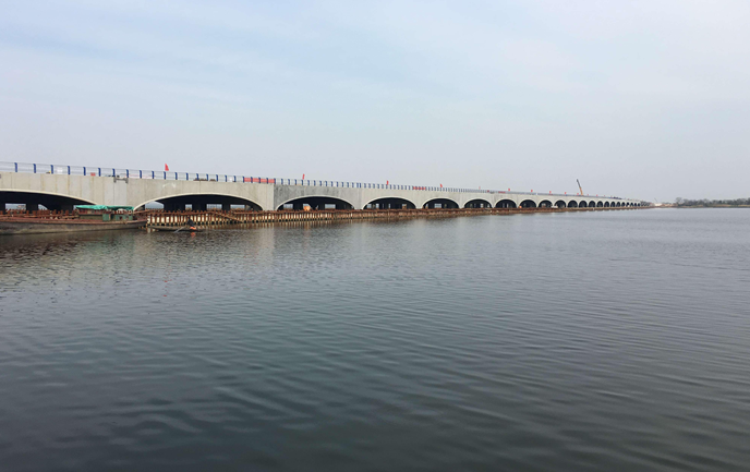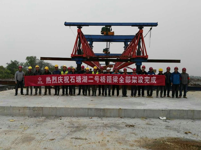 Anqing Waihuan North Road project is the first public welfare municipal road PPP project in China. The project is located at the northeast part of Anqing. It is the trunk road of the city with a total length of 14.93 kilometers and a total investment of 1.976 billion yuan. The project has 12 bridges including seven aqueducts and five viaducts, with a total length accounting for 28.7 per cent of the total constructed road. The construction of the bridge is the difficult part of the project and the key part of the construction. The longest bridge, the Shitanghu No. 1 Bridge, is 877 meters long. The project started on June 6, 2015. It took three months to do the relocation and construct a sidewalk. The overall construction was officially started in September. After overcoming unimaginable difficulties, the constructors created a miracle in process, quality and safety in a short period of seven months and completed the task of 12 bridges, 43 culverts and the most part of the subgrade. During the period, 1,320 bridge foundations and 948 piers were built. A total of 1,812 pre-fabricated box girders were produced and erected, 76 pre-fabricated T-shaped beams were produced and erected, and 72 cast-in-place box girders (double width) were produced.