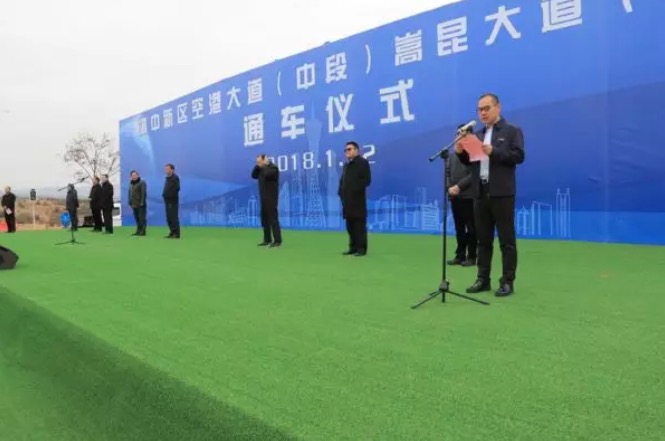 He Gang delivered remarks and announced the opening of traffic. He pointed out that, as an important integral part of the skeleton road network of the New Area, the airport highway(middle section)is a key and pacesetter infrastructure project of the New Area, representing the image of the New Area and being of great importance to the overall development and construction of the area and to the wellbeing of the people. He expressed that the successful completion of the project for traffic service is an important milestone in the history of infrastructure construction of the area, marking the initial formation of the skeleton road network and starting a prelude of urban development in the New Area.
