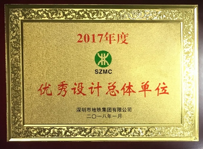 公司榮獲深圳地鐵集團“2017年度優(yōu)秀設(shè)計總體單位”稱號