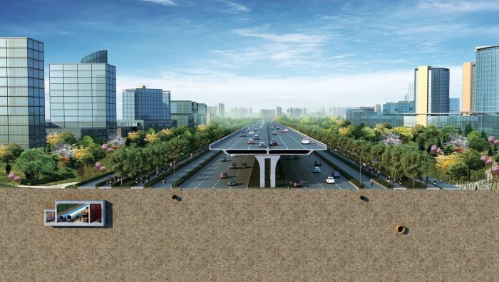 工程位于鄭東新區(qū)白沙園區(qū)科學(xué)大道及錦繡路,綜合管廊總長(zhǎng)17.29km,其中:干線管廊總長(zhǎng)度12.98km,出線支廊總長(zhǎng)度4.31km。入廊管線包含給水、再生水、熱力、電力、通信、天然氣及污水管線。