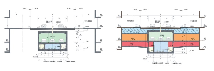 地下環(huán)形車道全長(zhǎng)約2800米,位于地下一層。主管廊全長(zhǎng)約3340米,位于地下二層。地下商業(yè)街總建筑面積1.8萬平方米,位于核心區(qū)東部。