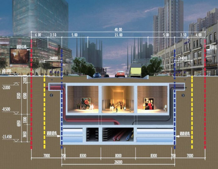 專案規(guī)劃用地位於河南省鄭州市二七老商業(yè)中心區(qū)域,涉及到二七區(qū)、金水區(qū)及管城區(qū)三個(gè)行政區(qū)交界。綜合管廊和地下商業(yè)空間一體化開發(fā),土地資源綜合利用,提高城市綜合承載力。在二七路、太康路下進(jìn)行地下空間開發(fā)利用,整體為三層,負(fù)一層為地下空間,負(fù)二層為管廊夾層;負(fù)三層為管廊層。