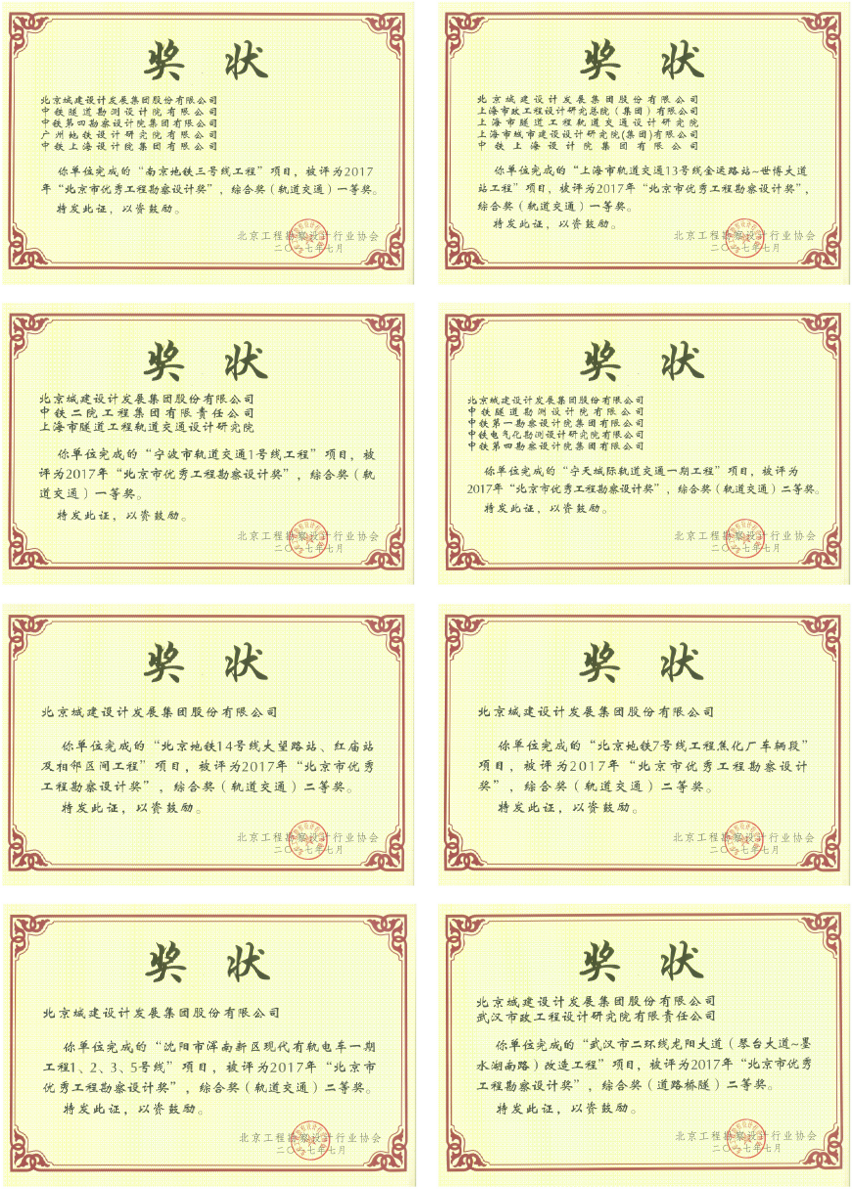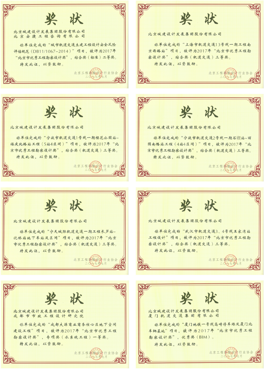 In accordance with the Circular of Beijing Engineering Exploration and Design Association on Identifying Projects Entitled to“Awards of Excellent Engineering Exploration and Design of Beijing 2017”(J.K.S.X.Zi [2017] NO. 14), Beijing Engineering Exploration and Design Association initiated the activity of identifying the projects entitled to“Awards of Excellent Engineering Exploration and Design of Beijing 2017”under the supervision and guidance of Beijing Municipal Planning and Land Resource Commission. Authenticated by the review board, UCD has won Awards of Excellent Engineering Exploration and Design of Beijing for 16 projects. Congratulations!