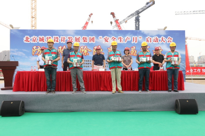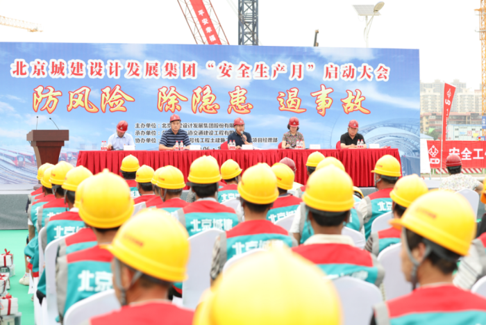 June is the “safe production month” once a year. The theme of this year’s “safe production month” is “guarding against risks, hidden dangers and accidents”. On the afternoon of June 5, UCD held the kick-off meeting for the “Safe Production Month” of 2019 at the site of 22nd tender project of Metro Line 16. Party secretary Li Guoqing, Party deputy secretary and trade union chairperson Mi Jianzhou, deputy general manager Wang Liang, safety director and head of safety engineering department He Junhua, track company manager Liao Qiulin and other leaders attended the meeting. Beijing-based project managers, safety deputy managers, production deputy managers and workers’ representatives were present as well.