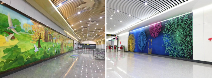 Situated in the cultural service area of the townspeople of Zhengzhou and in the neighboring areas, Line 14 has been laid along the Tongda Road and Train Station Avenue. It is a rail transit project aimed at serving the cultural service center and is a new window displaying the city’s graceful bearing in west Zhengzhou. Started from Xushui Station in Zhongyuan District, the line ends at Lianhu Station in the same district, with 6 stations and Tieluxi car depot set up that come to a total length of 7.455 kilometers or so. All underground, there are 3 transfer stations along the line. Stations along Line 14 have all been beautifully and uniquely designed and shaped in simplicity and bright color. With the inner space being commodious, art walls of the stations demonstrates the elements of the ethnic minorities games, being brisk and bright and creating a happy atmosphere.