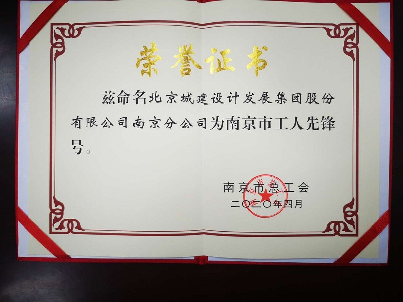 公司江蘇院南京分院榮獲“南京市工人先鋒號”榮譽稱號