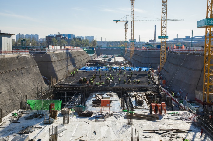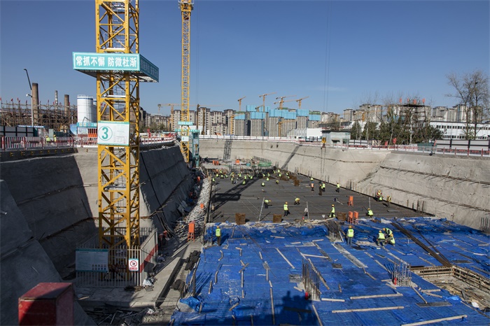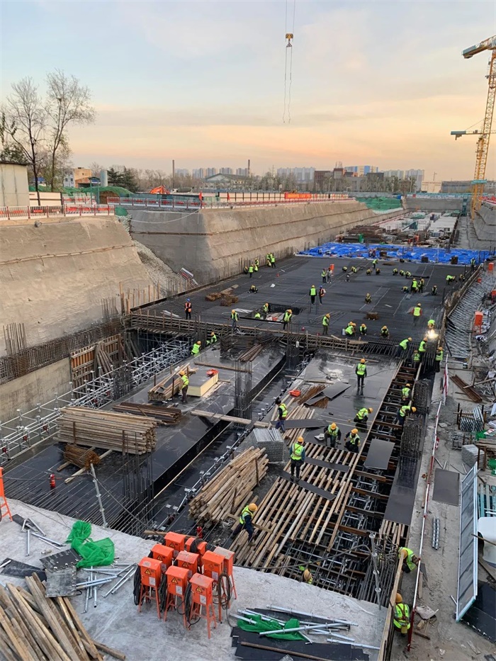 During the busy period of the project, the sudden outbreak of COVID-19 brought unprecedented difficulties to the construction. In order to make up for the delayed time due to the epidemic, the project team took the initiative and adapted to the local conditions. They made breakthroughs in process conversion and plan optimization: Firstly, they strengthened the coordination among various professional subcontractors on site, and assigned the workers in two shifts to ensure the site was under construction day and night; secondly, they increased investment of machines. During the peak period of construction, four tower cranes and eight truck cranes were in service at the same time; thirdly, they optimized the construction plan. For example, the upper enclosure structure of Shougang Station followed the construction plan of three anchor cables + three soil nails. After sufficient discussion of the technical department and approval of the design unit, they optimized three time-consuming anchor cables into one and used soil nails to replace rest ones, which saved about 15 days for the construction schedule; fourthly, they organized labor competition timely. The project launched a labor competition of “100 days of hard work, ensuring the node construction schedule; developing potential and improving efficiency” in September with a strict reward and punishment system, which greatly aroused the enthusiasm of the construction teams and soon formed the active atmosphere of “competing, learning, rushing, helping and surpassing".