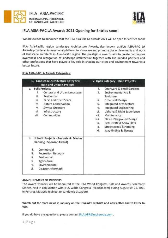 The AAPME Award was initiated by IFLA (International Federation of Landscape Architects) Africa, Asia-Pacific and Middle East in 2018, for all landscape planning and design practitioners around the world. The award was originally designed to show single and multidisciplinary projects based on landscape, and build resilience in urban and natural systems. The theme of the 2020 award is “GLOBAL CALL FOR RESILIENCE”, which calls for responsible practices adaptable to climate change and actual examples of joint efforts to solve resilience building issues, with explanation based on practical researches.