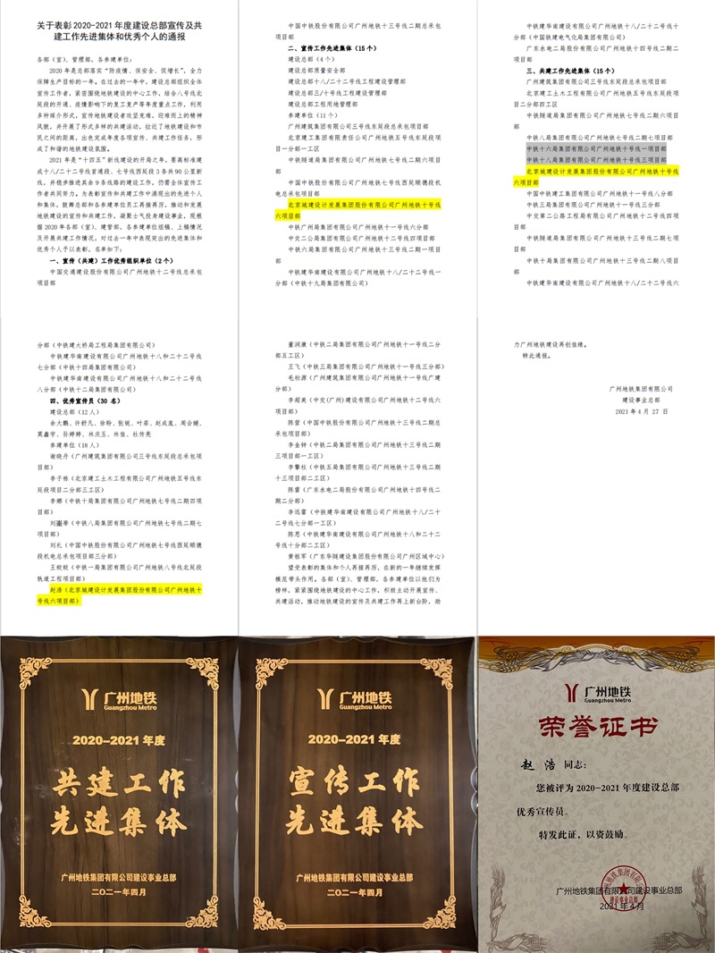 4月29日下午,在廣州地鐵建設(shè)總部“2020-2021年度宣傳及共建工作先進(jìn)集體和優(yōu)秀個(gè)人”的表彰中,廣州地鐵十號(hào)線項(xiàng)目碩果累累,榮獲“共建工作先進(jìn)集體”;“宣傳工作先進(jìn)集體”,是整個(gè)十號(hào)線11家單位中惟一獲此獎(jiǎng)的單位;趙浩同志榮獲“優(yōu)秀宣傳員”,是整個(gè)十號(hào)線惟一獲得此殊榮的個(gè)人。公司在整個(gè)廣州十號(hào)線所有參建單位中獲獎(jiǎng)最多。