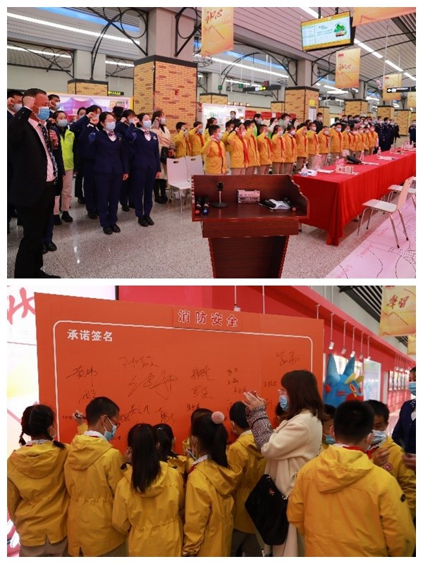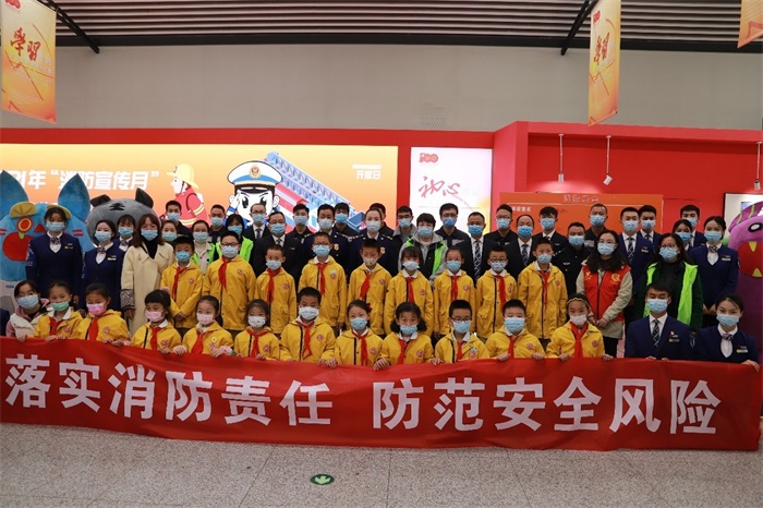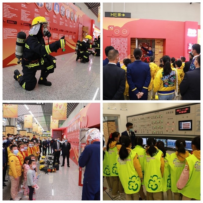 In order to further improve citizens’ firefighting awareness, popularize subway firefighting knowledge, and create a strong atmosphere in which everyone attaches importance to, cares about and participates in firefighting, on the afternoon of Nov. 8th, Yunnan Jingjian Rail Transit Investment and Construction Co., Ltd. joined hands with the rail transit brigade of Kunming Firefighting and Rescue Detachment to have launched the 2021 Firefighting Propaganda Month and Open Day for Subway Station Firefighting Propaganda with the theme of “Implementing Firefighting Responsibilities and Guarding Against Safety Risks” at the North Railway Station of Kunming Metro Line 4. The rail transit brigade of Kunming Firefighting and Rescue Detachment, leaders of Yunnan Jingjian Rail Transit Investment and Construction Co., Ltd., rail public security officers and security inspection workers, Shuguang Primary School students, community staffs and subway staff representatives took part in the event, making efforts together for the good wish of “Consolidating the Firewall and Creating Safe Homes”.