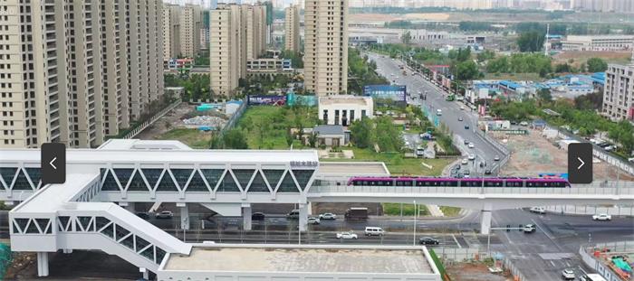 Extension of the rail transit line 4 totals 4.5 kilometers in length. It starts from the southern end of the Tiangonglu Station and ends at the Tianxinlu Station. An elevated line has been laid along the Linhe Street, with 5 stations set up in all, of which Fuzhidalu Station is a transfer station to Line 6 under construction. The average distance between the stations is 864 meters, with the stations being all elevated side-type ones.