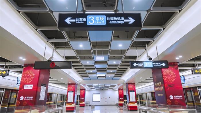 無(wú)錫地鐵3號(hào)線一期工程北起蘇廟站,南至碩放機(jī)場(chǎng)站,線路全長(zhǎng)28.5公里,是無(wú)錫市構(gòu)建區(qū)域交通樞紐城市的地鐵骨干線路。2020年10月開通運(yùn)營(yíng)。