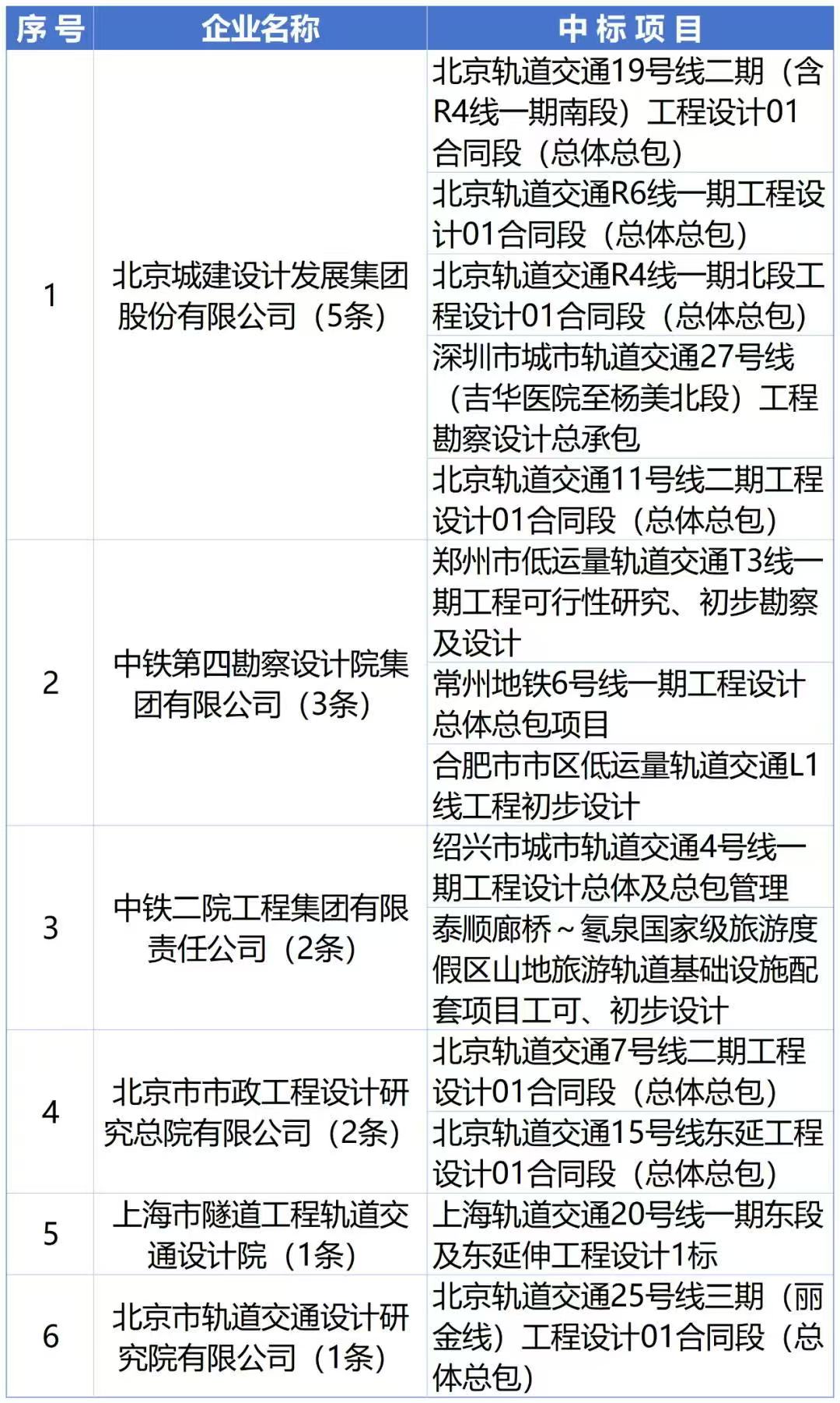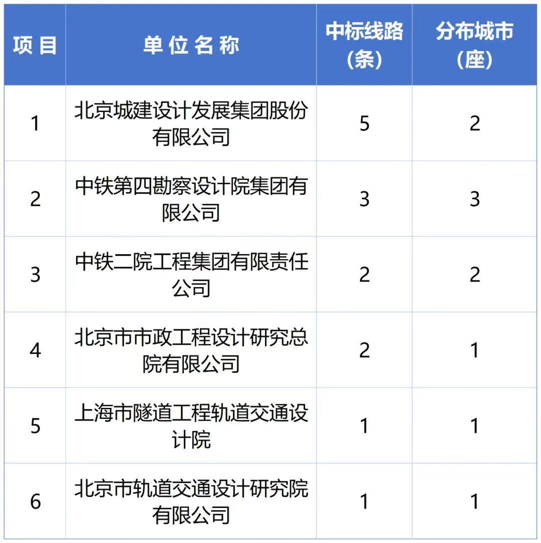 The tendering process of general contracting projects (including general contractor, design contractor, and survey-design contractor) for 14 new lines in 8 cities was completed in 2024. UCD ranked first with five bid wins.